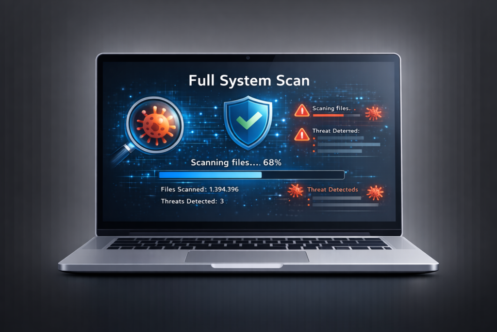 Make sure to select a full scan, not a quick scan. Follow the prompts to quarantine or remove any detected threats.